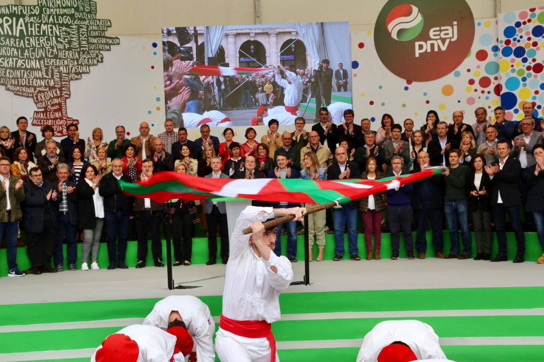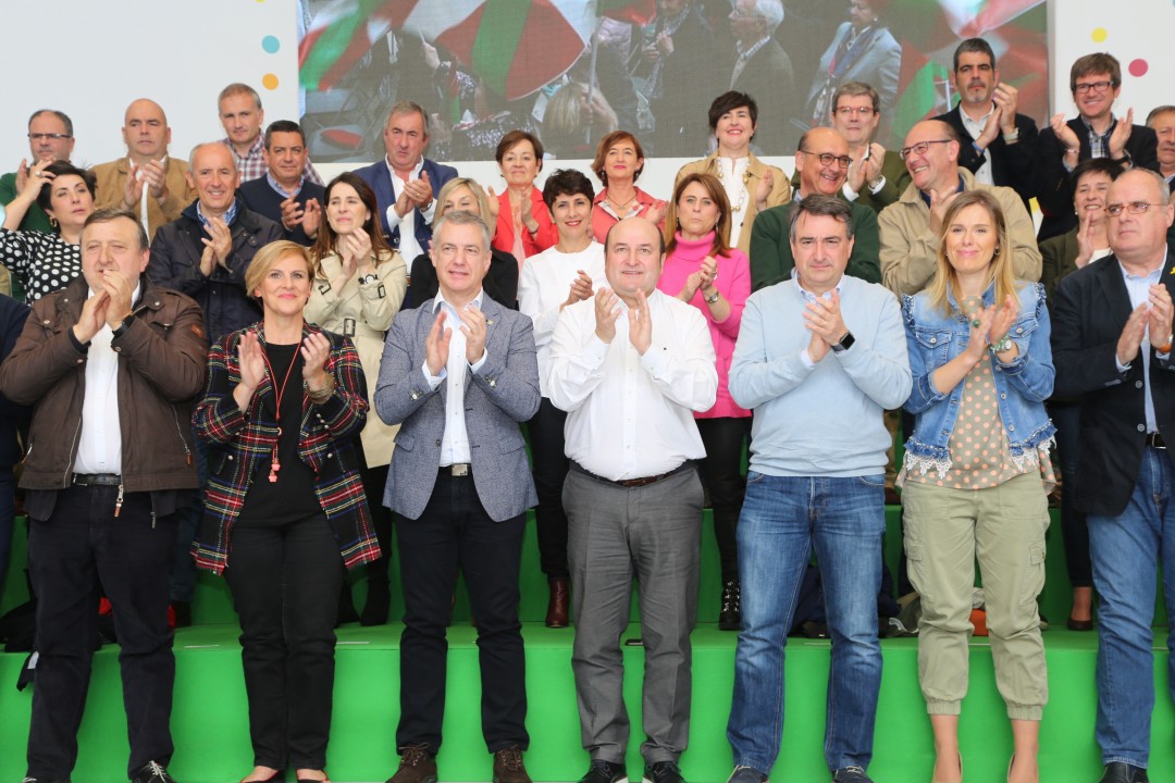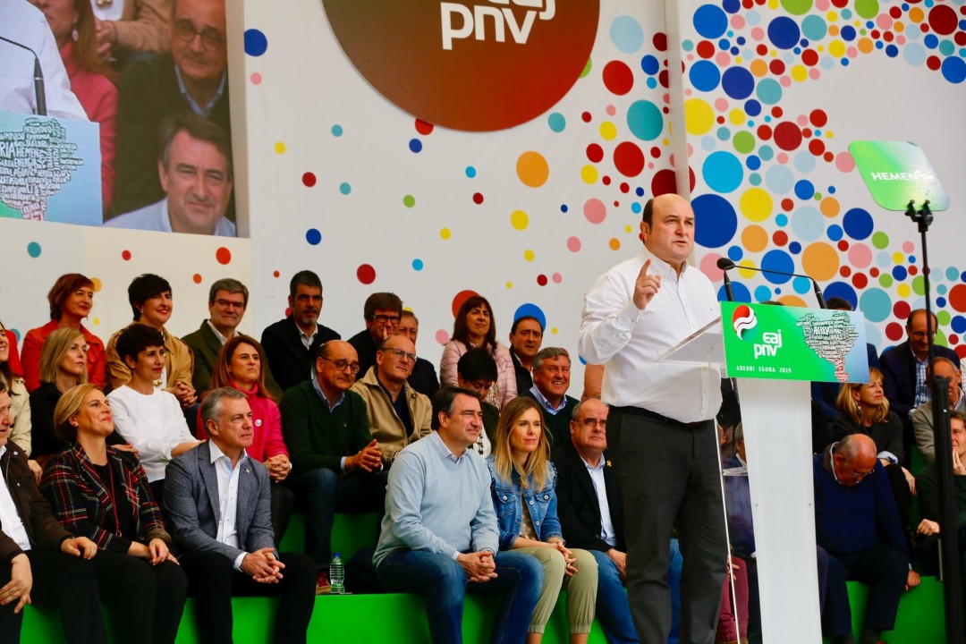 Mitin Aberri Eguna 2019. Aitor Esteban, Iñigo Urkullu, Andoni Ortuzar. Bilbao.